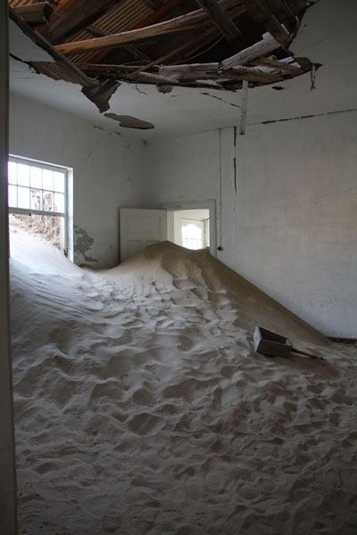 Sand piling up inside one of the buildings. |