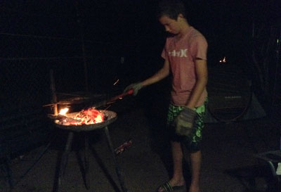 They often made their own breakfast on the gas stove but also started to learn how to get an open fire right for cooking. |