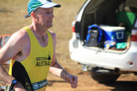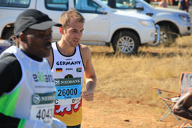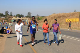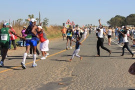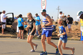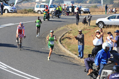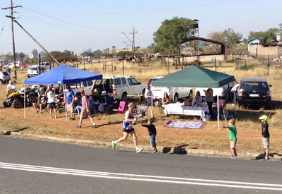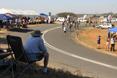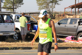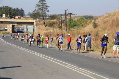 The first runner to go through, a South African, Gift Kelehe, who went on to win the race in 5 hours 38 minutes. He was nearly 8 minutes ahead on the next runner. |