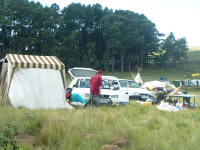 Splashy Fens is in a beautiful location in the foothills of the Drakensberg mountains. Paula, Sean, Kevin and I arrived the day before the festival started and camped in Paula's favourite spot - this was the view from our camp. |
