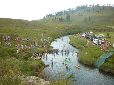 We walked down into the valley and stopped to watch the antics of revellers in the river.