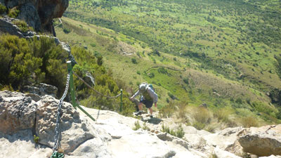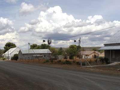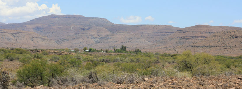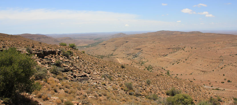 Great views from the top of The Buttress. Karoo back roads.Between The Karoo National Park and Sutherland we travelled on gravel roads through a very dry Karoo landscape. We had to drive up the Ramelkop Pass and were glad of dry roads as there were several steep sections which required low 4 wheel drive. This photo from near the top of the Pass shows how dry it was. In the distance is a serpentine of green which is a river valley, although we didn't see much water in the river. Sutherland We wanted to visit the South African Astronomical Observatory which is situated 15km from the town of Sutherland. The town is very small with a few shops but there's lots of accommodation available. We were impressed by the cleanliness of the town - something that we noticed about all the Karoo and Western Cape towns that we visited. |