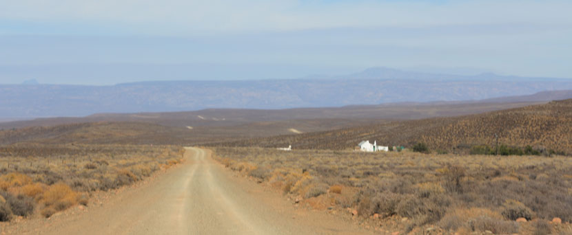 Karoo Back Roads.Our route from Sutherland to Paarl took us along more Karoo gravel roads. Occasionally we'd pass an isolated farm and sometimes see a few sheep but the drought has affected a lot of farmers. |
