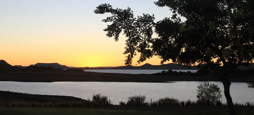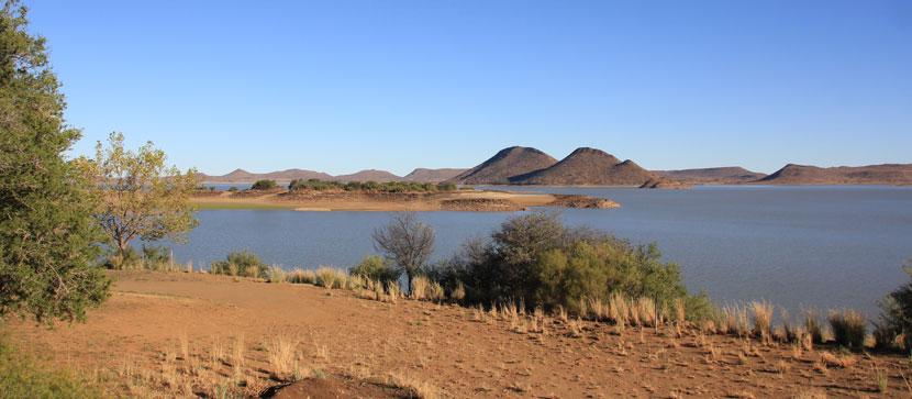 Gariep Dam Nature Reserve.The Reserve is located a few kilometres from the N1 on the shore of South Africa's largest dam. It was only at about 50% capacity so some 'islands' had become peninsulas. I got up in time to take this photo of the sunrise over the dam. |