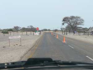 From Ghanzi we drove to Maun which is the main tourist centre for trips to the Okavango Delta and the Central Kalahari. On the way we were stopped twice because of Foot and Mouth restrictions. Both times we had to get out and step in some disinfectant and the tyres of the truck were sprayed. We were also asked if we had any fresh meat products and the fridge/freezer and our cool bags were checked. Fortunately we just had some frozen chicken in the freezer which we were allowed to keep. |