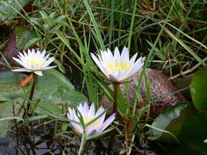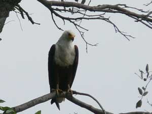 As the river was quite low at this time of the year our poler had a bit difficulty in getting through some of the channels! We did see one hippo in the water but it soon disappeared however there were plenty of birds and plants to look at and our guide was very informative and interesting. We saw plenty of water-lilies and got close to a pair of Fish Eagles who were perched in a tree overlooking one of the channels. |