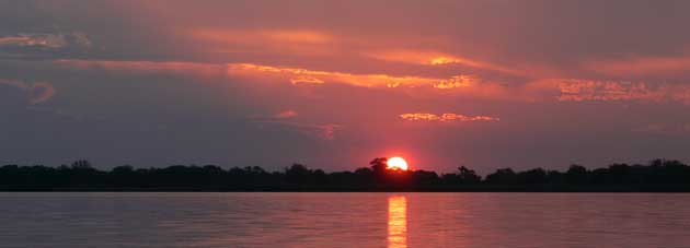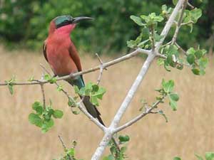 Near the campsite we saw several Carmine Bee-Eaters who would sit on fences or branches looking out for tasty snacks! One evening we went on a sunset cruise. Our guide took us out across a big lagoon and out towards the main river channel before heading back and rounding the corner into the large lagoon just as the sun was setting - he'd done this before!!