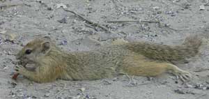 We stopped at Sitatunga Rest Camp 10km to the South of the town but were the only independent campers there - all the others were overland tour groups, some came in small groups in minibuses but other large groups arrived in big trucks, most just staying for 1 night. This was our least favourite camp as the bar was open until 12.30am and, on the 2 nights that we were there, there was partying into the small hours. However during the day it was quiet and there were plenty of squirrels and birds to watch. We went into Maun for a morning to find out about trips into the delta but were put off by the prices, at least £100 per person per night plus flights as most of the camps are only accessible by plane - perhaps another time. |