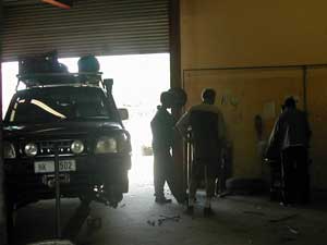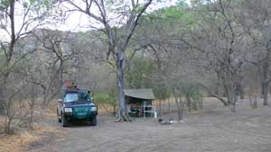 When re-inflating the tyres we noticed that the front nearside tyre had a leaky valve. In the next town, Shakawe, after stocking up with corned beef and tuna (as they had no fresh meat and the frozen chicken came in big 2kg bags), bacon, bread and vegetables. we asked about getting the valve replaced and eventually found the ‘Brigade School’ which turned out to be the Okavango Development Training Group which had workshops and training facilities for teaching a range of skills to the locals. One of them was a garage where we told that they could replace the valve but that we would need to supply it! So we drove back into town, bought a valve from the car parts shop and went back to the workshop where they replaced the valve for us. Cost us P40 plus we gave one of the guys a P10 tip but well worth it to get it fixed so quickly. |