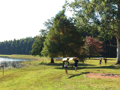 The entrants had to cover a 200m section carrying their canoes. |
