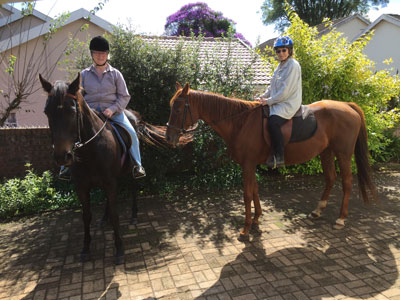 Paula was away at Splashy Fen Music Festival so Di and I went round each morning to groom the horses and a couple of times went out on a short ride - as it was over 40 years since Di had ridden!! |