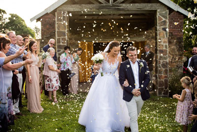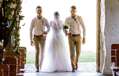 Ron's dad died a few years ago so she was walked down the first part of the aisle by her brothers, Jason and Mark, and then by her Grandad. Leaving the church. |