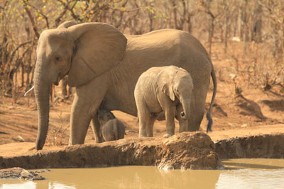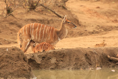 We saw this male waterbuck from a bridge over the Letaba River. A female nyala and her calf at the Punda Maria waterhole. |
