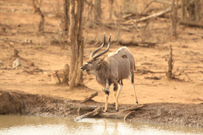 The first baby impala that we saw. A male nyala at the Punda Maria waterhole. |