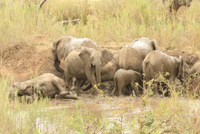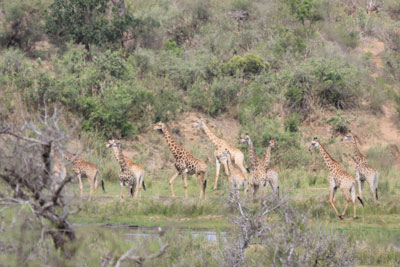There were over 20 giraffe in this group in the Sabie River. JUst as we spotted them we saw a few of them chase a hyena up the opposite hillside. |
