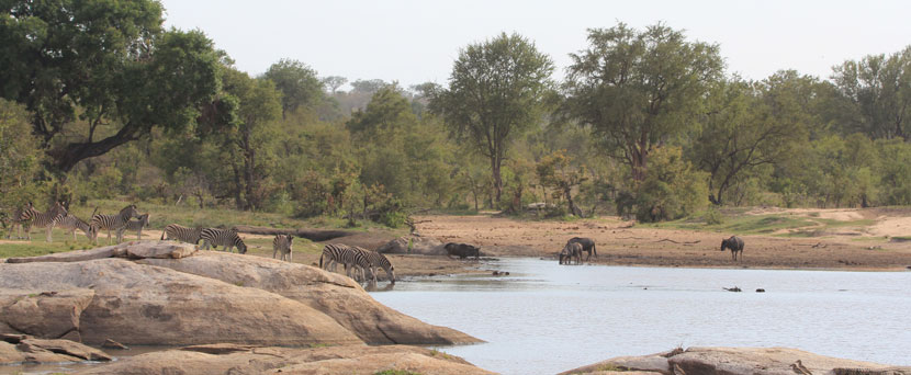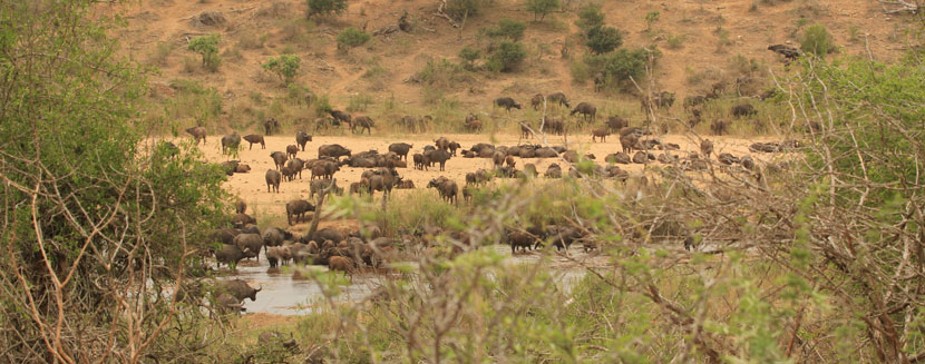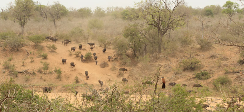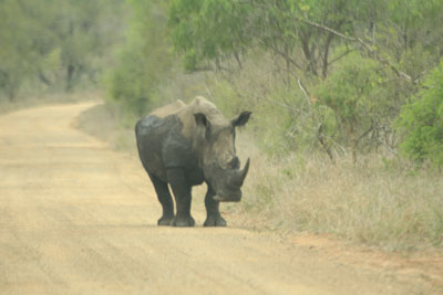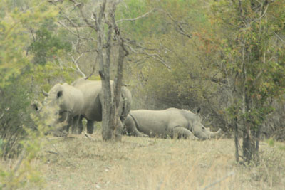 We saw a cloud of dust over the Sabie River and stopped to watch a large group of buffalo heading quickly down to the water. Once they'd made their way to the river the dust settled and we watched them until they started heading up the hill towards us. Poaching is still a big problem in Kruger, especially rhino. We were lucky enough to see some on a few occassions. |