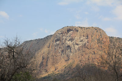 Blouberg Nature Reserve. I'd read about this Reserve having the largest Cape Vulture breeding colony so decided we'd stay there on our way north. We stayed at Molope Bush Camp (there are cottages and a tented camp in other parts of the Reserve) which has 5 pitches each under a large shady tree and a central ablutions block. I'd expected to get a proper map at reception but it was a small A4 sheet which was barely legible so was glad that our Track4Africa GPS map had most of the Reserve tracks shown. There had been no rain for months so it was extremely dry and most of the few animals that we saw ran off as soon as they heard our vehicle which was disappointing. |