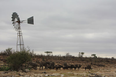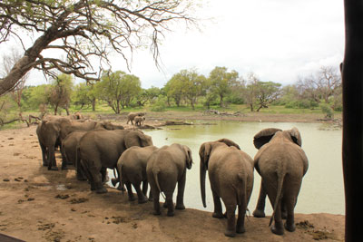 We saw some signs for a 4x4 Eco Trail and, as the track was shown on our Tracks4Africa GPS, decided to follow it. We needed 4x4 and sometimes low ratio to negotiate the trail and were glad of the GPS as, from time to time the trail wasn't clear over the rocky sections. We travelled through some interesting scenery and came across a group of wildebeest and a few elephants at a waterhole. |