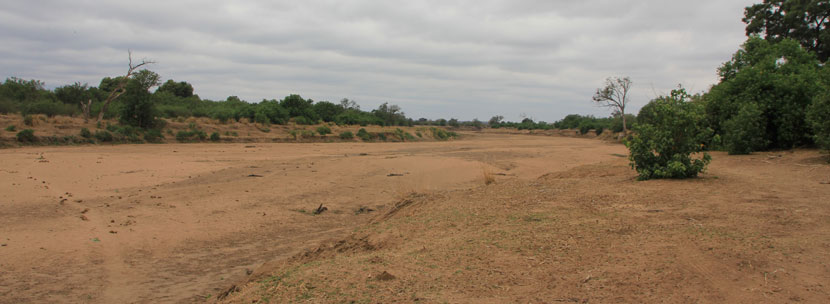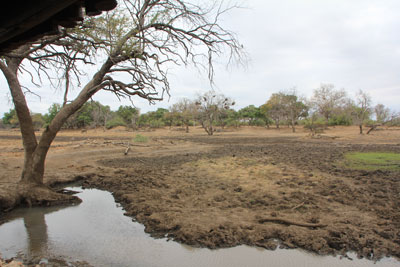 Mapungubwe National Park The Park borders Botswana and Zimbabwe and has 2 sections. The campsite is in the smaller Western section and it's a 40km drive to the gate at the Eastern Section so we stayed in the Western part. We got a lovely shady site under a huge tree but our stay was marred by the monkeys which were a real pain. We saw some of them trying to chew through the shade netting on the raised roof of our neighbours caravan and were advised to lower our roof and put away the bed section if we went out in the vehicle to ensure that they didn't attempt to get into our van. The Limpopo River is the border between South Africa and Botswana in the Western Section of the Park. Some stretches of the River had water but other parts were completely dry! Difficult to believe that this is only a short distance from the previous photo. When we visited this park at Christmas 2011 I spent most of the time at the waterhole, about 4km from the camp. However this time there was hardly any water and very few animals or birds to be seen which was disappointing so we did drive round various tracks within the Reserve and also some just outside the main park. |