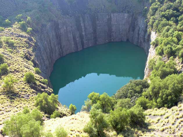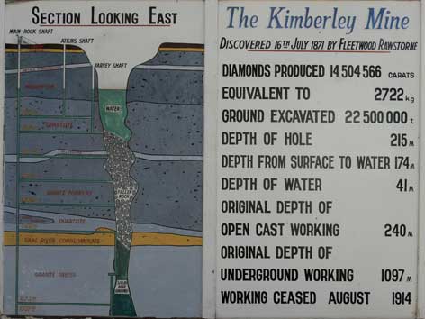 Diamonds were discovered in rocks near the surface and and graduallly the miners dug a huge hole. Eventually it became too dangerous to dig any deeper so shafts were sunk and tunnels made to access the diamonds. This area us now part of a museum.