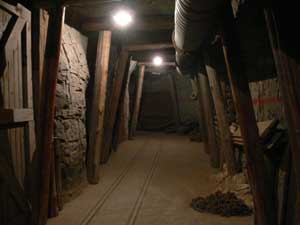 There's a mine head winding wheel and you can go down in a lift to see the tunnels that have been re-created to show what it was like underground. |