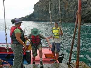 There are ropes and helpers for getting on and off the boat - you have to time it just right as there's usually quite a swell.